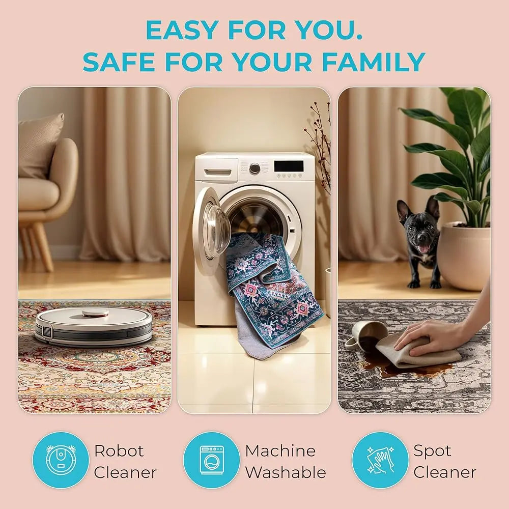 5 x 7 Thin Washable Area Rug - 5’X7’ Boho Rugs, Non-Slip
