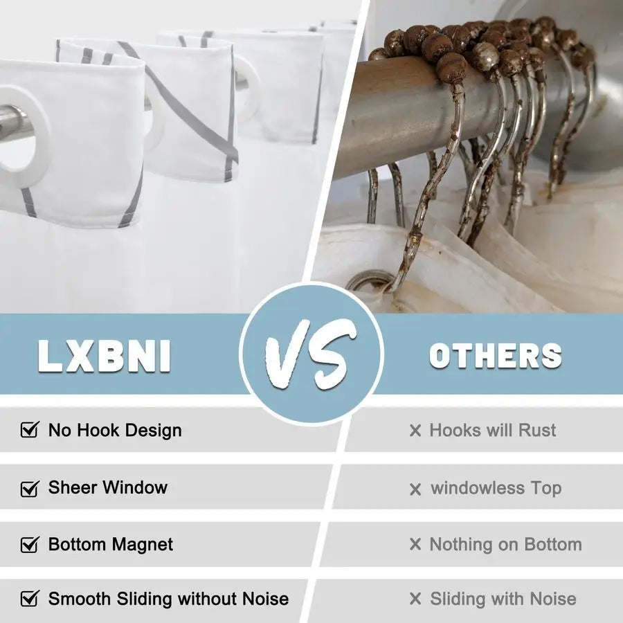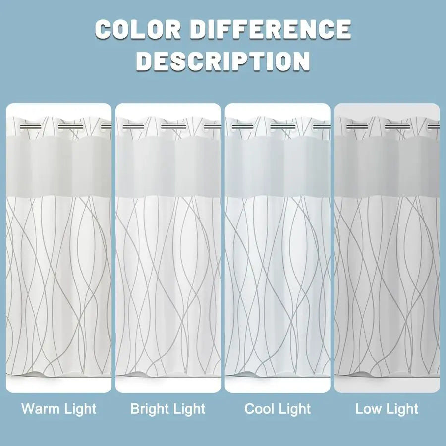 Hook Grey/White Striped Long Shower Curtain with Snap in Liner Set